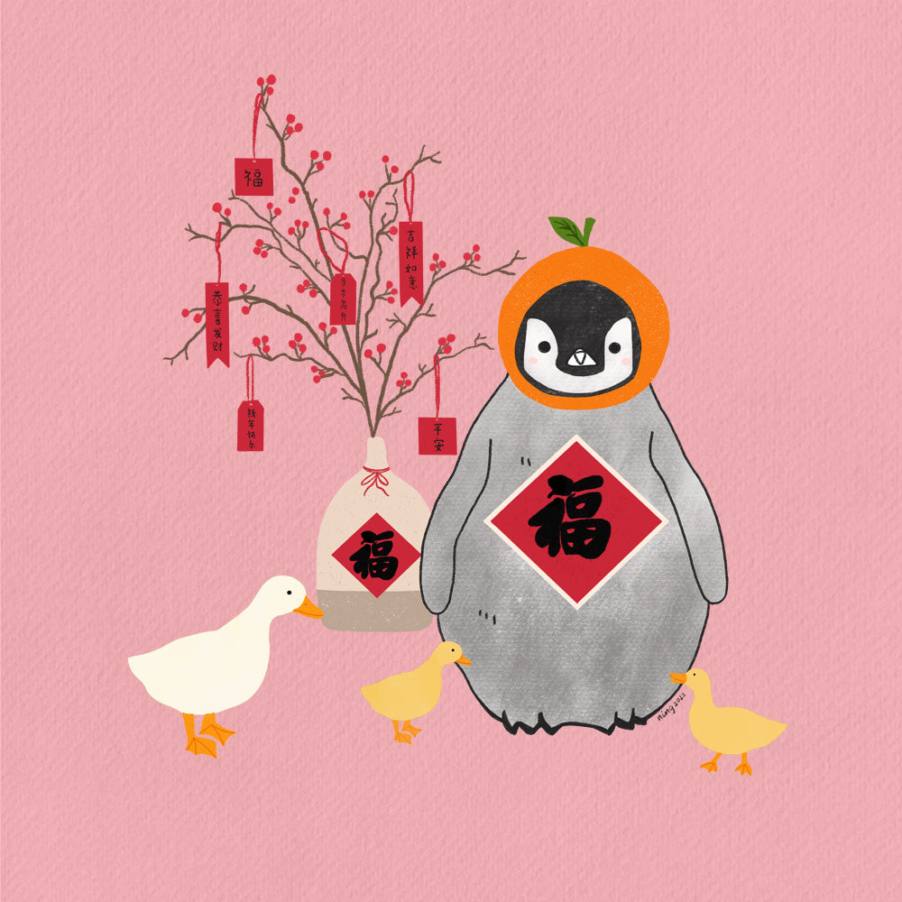 Pudding the Penguin Ming Dynasty Lady Acrylic Keychain