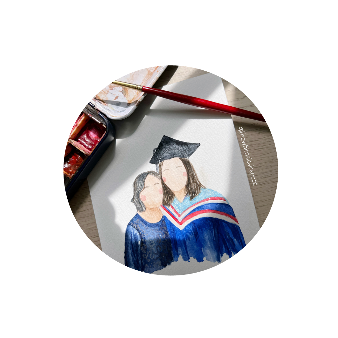 Mini Portraits are 10 x 15cm in size and can fit up to 4 individuals. All portraits are painted on 100% cotton, 300gsm premium watercolour paper and will look beautiful framed on the desk or on walls.
