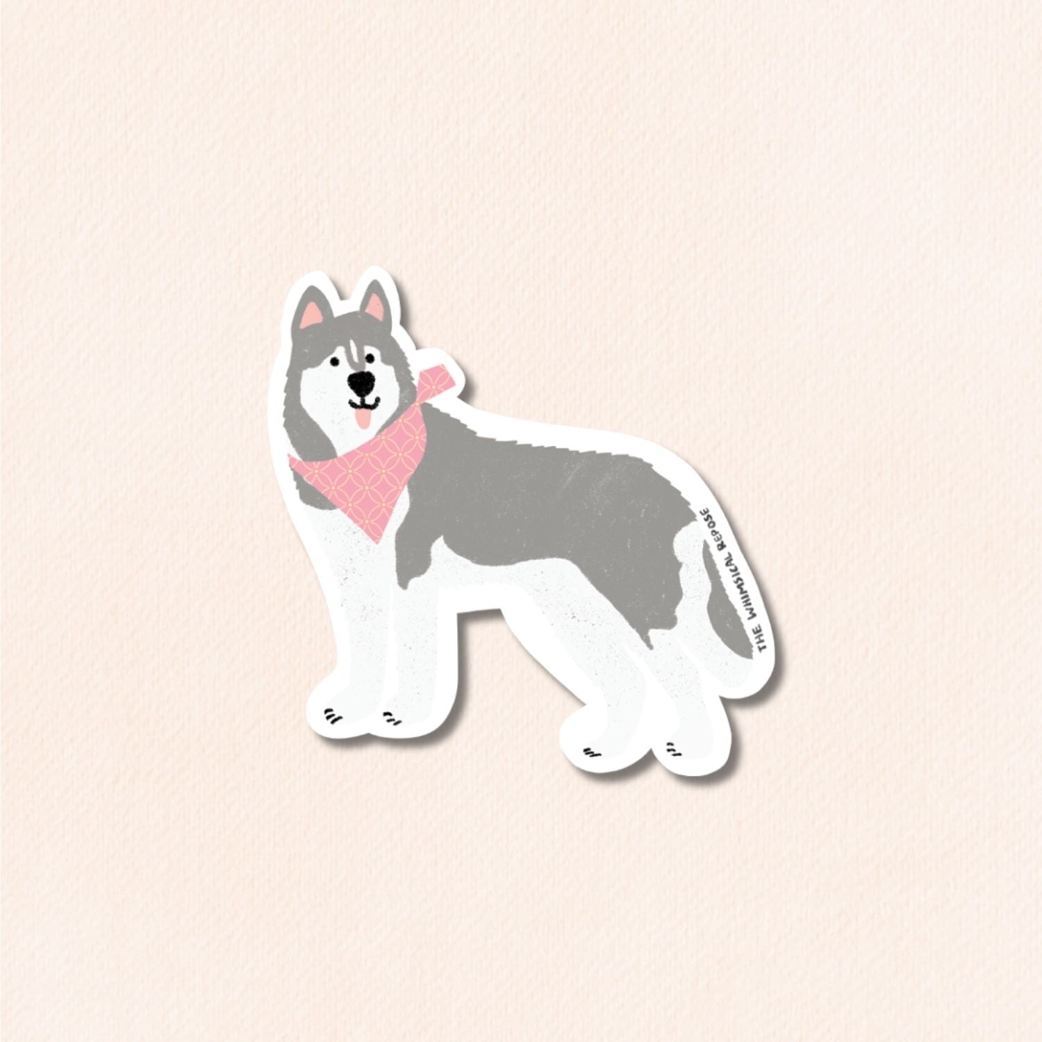 Meet the playful Siberian Husky, your new emotional support sticker 🩷 — printed on durable, waterproof vinyl that can survive coffee spills, teardrops, and too many late-night journaling sessions.